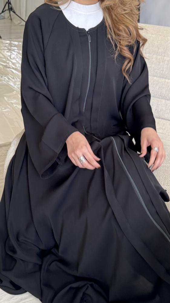 عباية سحاب كلوش بقماش انترنت صيفي مع طرحة