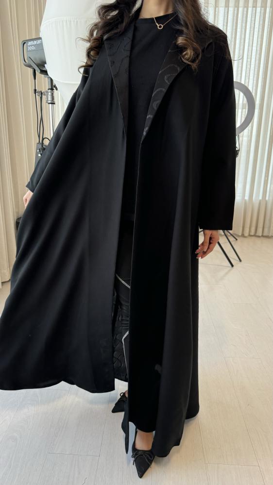 عباية نص كلوش بكسرة من الخلف مبطنة بقماش بجكار مع طرحه هديك